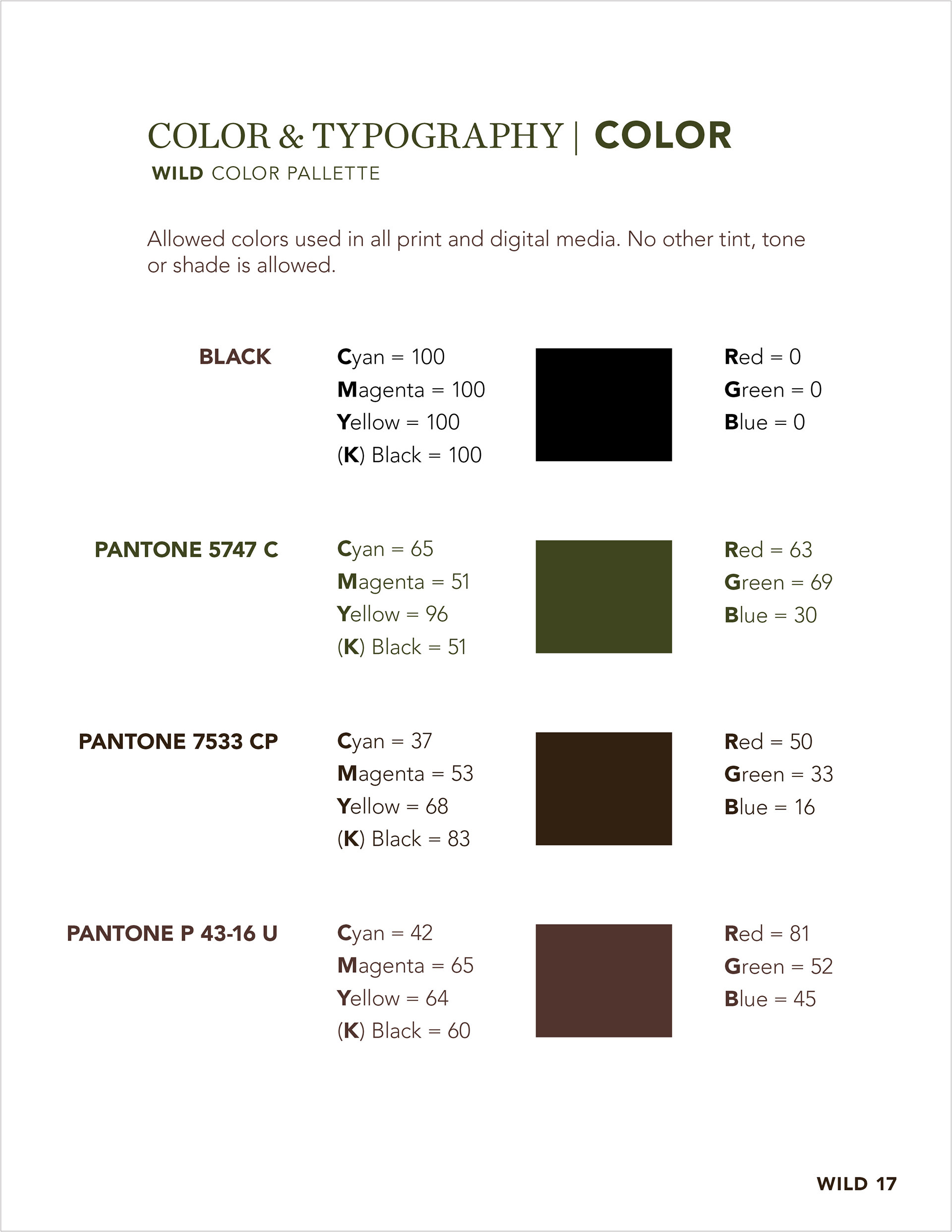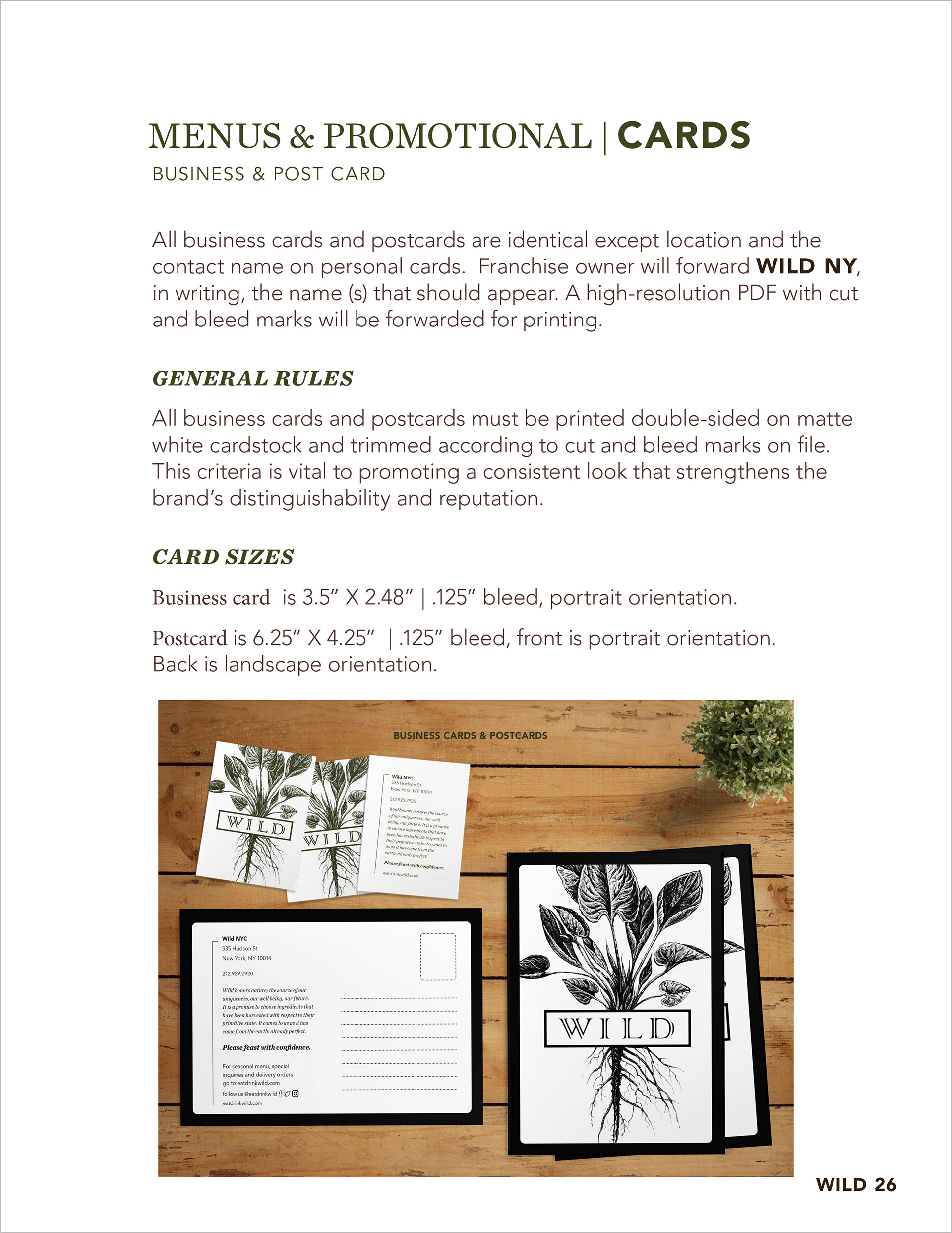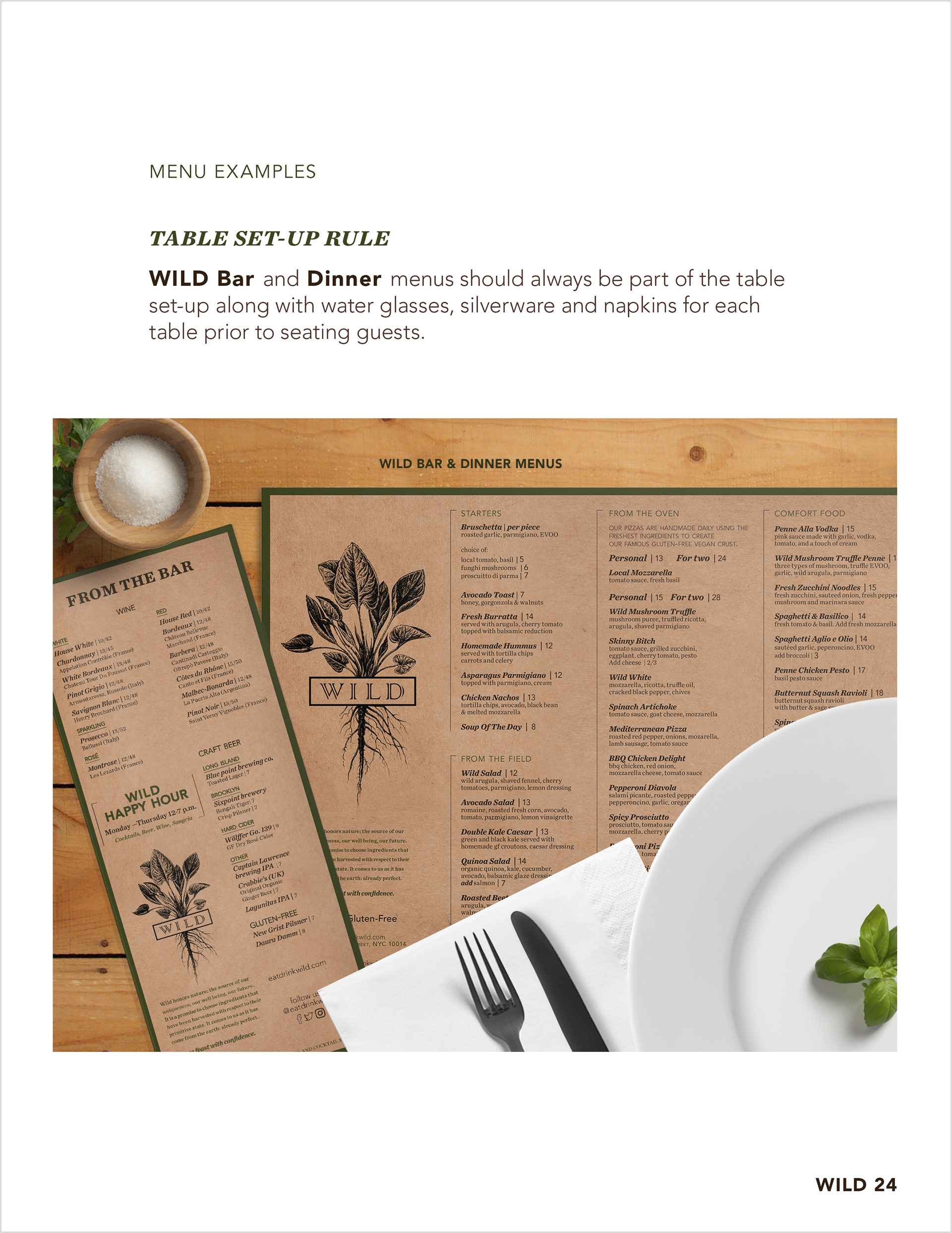 Wild Restaurant is a 100% gluten-free restaurant in New York City that I have been working with for the past two years handling the upkeep of the menus and promotional items as well as social media. The owners exclusively own two locations but in 2016, they made the bold decision to expand the business with their first franchise location opening in Park Slope, Brooklyn. The owners soon realized that they needed to set guidelines for franchise owners to follow. This is just a portion of the Wild's guidelines, which I have created to ensure everyone stays on-brand.